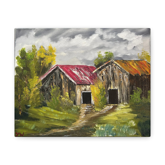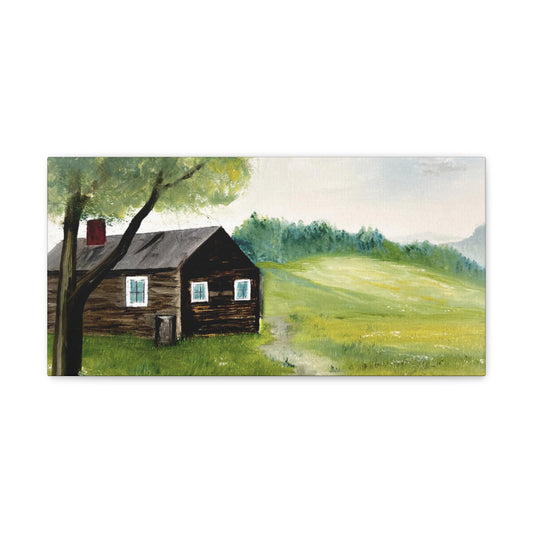 Canvas print of original oil painting of a cabin in the Blue ridge mountains